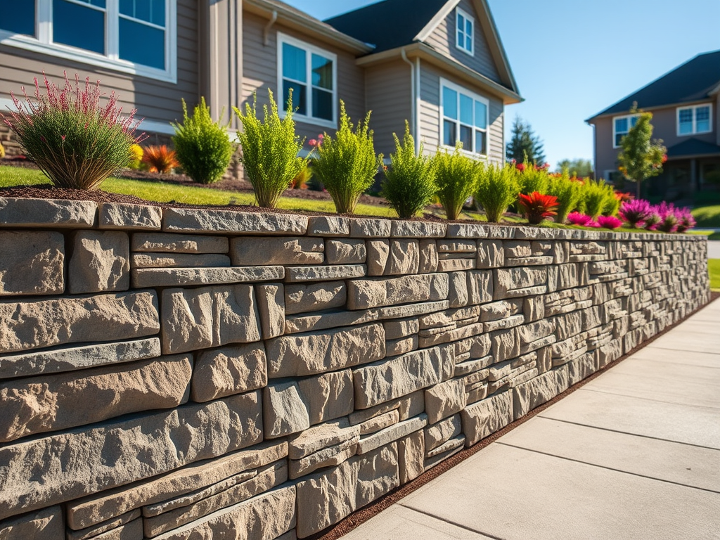 Engineered retaining wall systems to prevent soil erosion, manage elevation changes, and add architectural interest to landscapes.